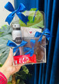 Surprise him with this stylish transparent pouch featuring a sleek leather wallet, refreshing Zarar body spray, and a touch of sweetness with a KitKat chocolate. Decorated with vibrant blue bows, this gift pouch blends practical elegance with thoughtful presentation – perfect for birthdays, Eid, or just because. Perfect for siblings, friends, or couples, this gift is a charming way to share festive joy and love in thoughtful packaging.