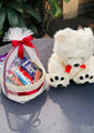 Make someone's day sweeter with the Cuddle & Chocolate Surprise! This delightful gift set includes a fluffy white teddy bear and a beautifully arranged chocolate basket wrapped in an elegant net with a satin bow. Whether it's for a birthday, anniversary, or just to bring a smile, this charming duo combines warmth and sweetness, making it a heartwarming gift for any occasion.