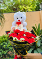 Red Rose Bouquet with Teddy Bear – Perfect Adorable Romantic Gift Combo