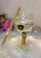 The Customized Doodh Pilai Glass Decorated With Golden Lace & Pearls | DPG-008