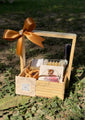 Celebrate Eid with grace through this golden-themed Eid basket, carefully curated in a wooden crate wrapped with a satin orange bow. It includes golden and white bangles, a mehndi cone, statement earrings, ring, and a sweet delight—all complemented by a beautiful ‘Eid Mubarak’ greeting card. The colours reflect festivity, tradition, and warmth, making it an ideal choice for sisters, friends, colleagues, or bridesmaids. A perfect blend of celebration and elegance, ready to be gifted with love.