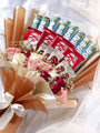 Celebrate special moments with the KitKat and Bounty Chocolate Bouquet. This stunning bouquet combines creamy chocolates with soft peach wrapping, delicate flowers, and a touch of elegance to make your gift unforgettable.