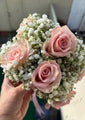Blush Charm brings a delicate and dreamy touch to your traditional attire. Handcrafted with blush pink roses nestled in a cloud of baby’s breath, this floral gajra is a soft and romantic accessory ideal for nikkah, bridal showers, or mehndi events. The soothing tones and fresh florals create a look that is both graceful and timeless. Tied with a soft satin ribbon, it fits comfortably and adds floral elegance to your celebration.