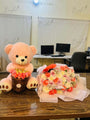 This charming teddy and flower bouquet gift set pairs a soft plush teddy with a beautifully arranged pastel floral bouquet for a heartwarming surprise. The flowers feature peach roses, white chrysanthemums, and delicate fillers wrapped in premium soft paper. The cuddly teddy adds an element of warmth and emotional comfort, making the gift feel extra personal. Perfect for get-well wishes, thank-you gestures, or just-because moments. A thoughtful combination that speaks through care, softness, and affection.