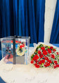 Surprise your loved ones with this red rose bouquet and luxury gift box, beautifully paired to create a complete celebratory look. Wrapped in white paper with baby’s breath accents, the bouquet radiates romance and elegance, while the transparent gift box adds a modern charm. Ideal for birthdays, anniversaries, and special surprises, this set blends classic florals with stylish presentation, making every moment memorable.