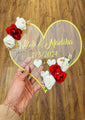 Introducing the Customized Nikah Acrylic Heart With Name and Six Bloom from Beezle Store! It's a special way to show your love. This heart-shaped piece is made from really good acrylic material, so it lasts a long time.