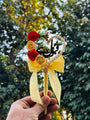 This Golden Nikah Pen is a beautiful blend of elegance and tradition. It features a pearl-embellished heart frame, adorned with vibrant red and yellow roses for a striking floral touch. The golden handle is wrapped in a shimmering ribbon and finished with a luxurious bow, adding a graceful charm. Lightweight and easy to handle, this pen is crafted with high-quality materials, making it a perfect addition to your Nikah ceremony.