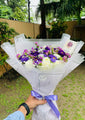 Brighten their day with Lavender Bliss – a graceful bouquet of purple and white blooms, wrapped in frosted white paper and tied with a soft lavender satin ribbon. This fresh and fragrant arrangement is perfect for birthdays, congratulations, or just to say “you’re special.” A gift full of colour, calm, and class. Give a lavender and white flower bouquet wrapped with elegance right now!