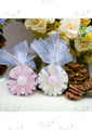 Celebrate thoughtful gifting with this charming Daisy Twin Candle Set. Featuring two mini flower-shaped candles in soft pastel pink and ivory hues, each piece is beautifully wrapped in white net and tied with rustic twine. Perfect as giveaways, wedding favours, or return gifts, these daisy candles combine elegance and fragrance in one delightful package. A heartwarming token for your loved ones, adding a floral touch to every celebration.